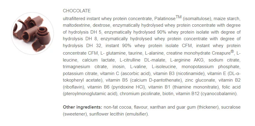 • enzymatically hydrolysed 90 % whey protein isolate with degree of hydrolysis DH 8,