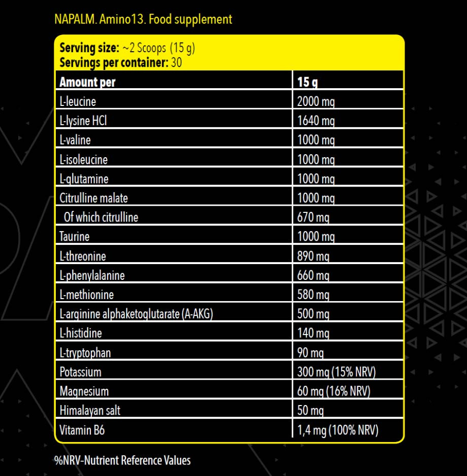 Choose the Napalm quality from Fitness Authority and let yourself be pampered with Amino 13!