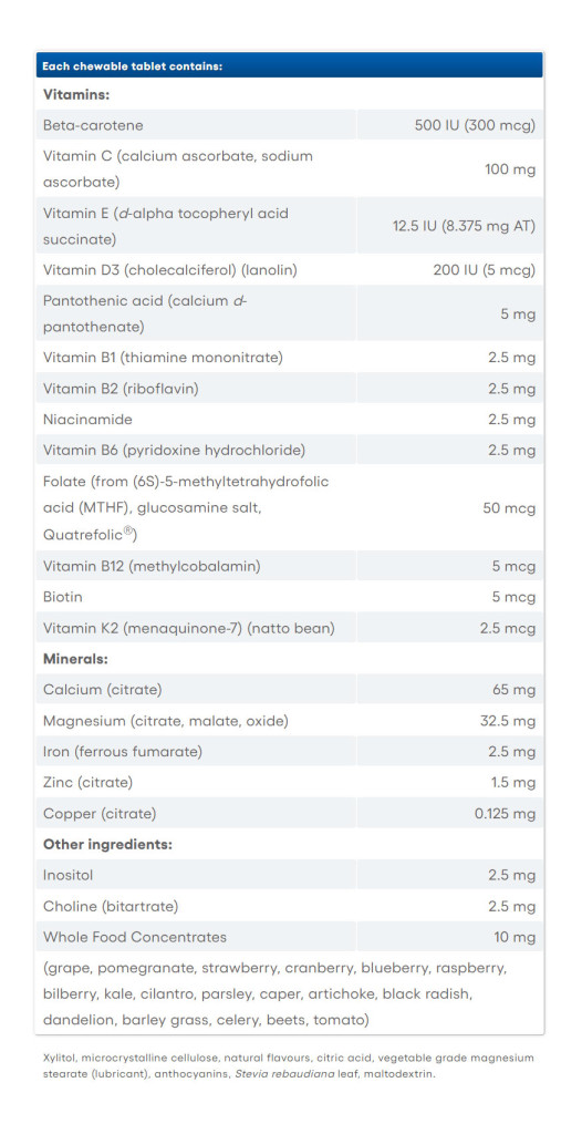 Big Friends children’s vitamins are back in a big way, and now better than ever. Big Friends Chewable Multivitamin Minerals provides children three years and older with optimal amounts of the vitamins and minerals their bodies need for good health. Wholefood concentrates from Factors Farms® supply phytonutrients, while delicious fruit flavours and friendly dinosaur shapes keep little ones smiling.