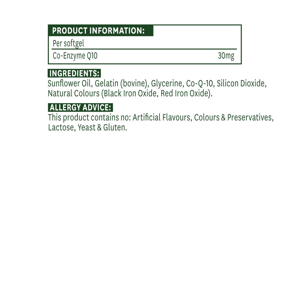 This Co-Q-10 30mg is combined with sunflower oil, to ensure this supplement is free from common allergens.