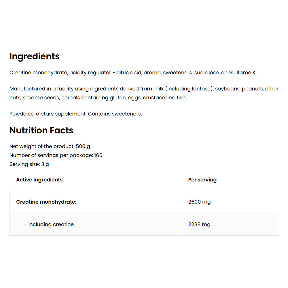 Properties of the ingredients contained in OstroVit Creatine Monohydrate: