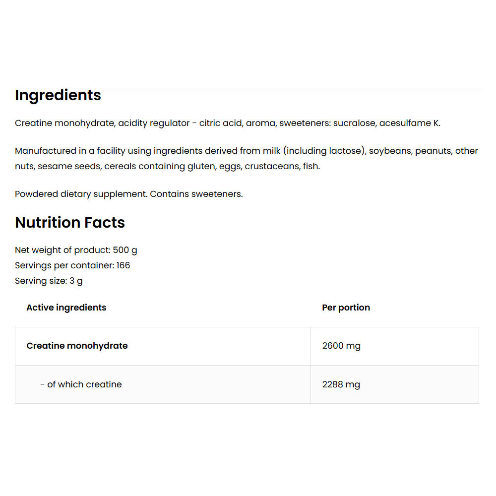 Properties of the ingredients contained in OstroVit Creatine Monohydrate: