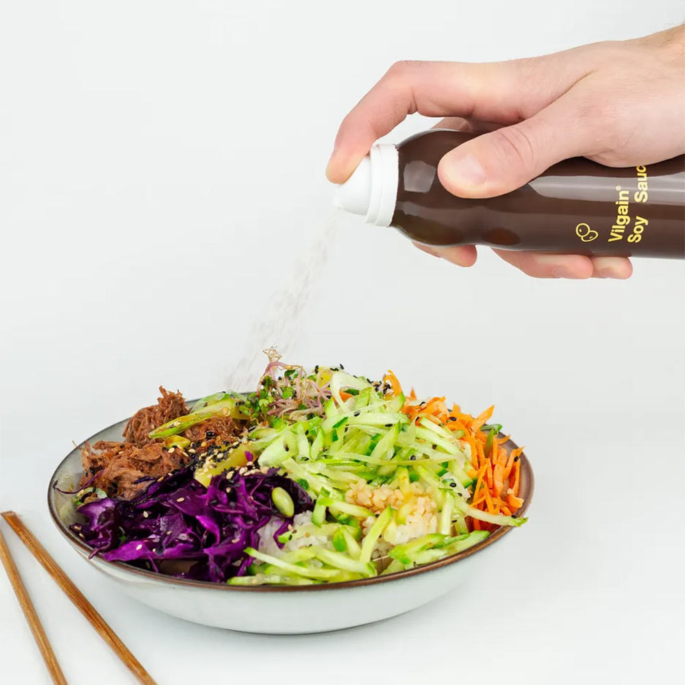Have you ever poured too much soy sauce on your favorite salad? Vilgain Soy Sauce Spray is made just for you. Thanks to the spray format, you can always perfectly control the amount of sauce on your food.