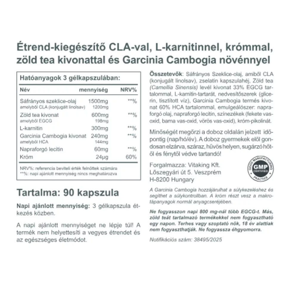 Vitaking Fat Burner is a unique, specialized complex featuring garcinia extract, which helps regulate body weight and contributes to reducing fat storage.