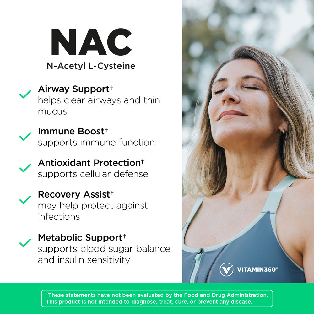 NAC (N-acetyl-L-cysteine) is a particularly powerful infection-fighting compound that has justifiably gained popularity in recent years. This is partly because since the COVID pandemic, many people have rediscovered how effectively N-acetyl-L-cysteine supports airway clearance, the body’s antioxidant capacity and immune system function.