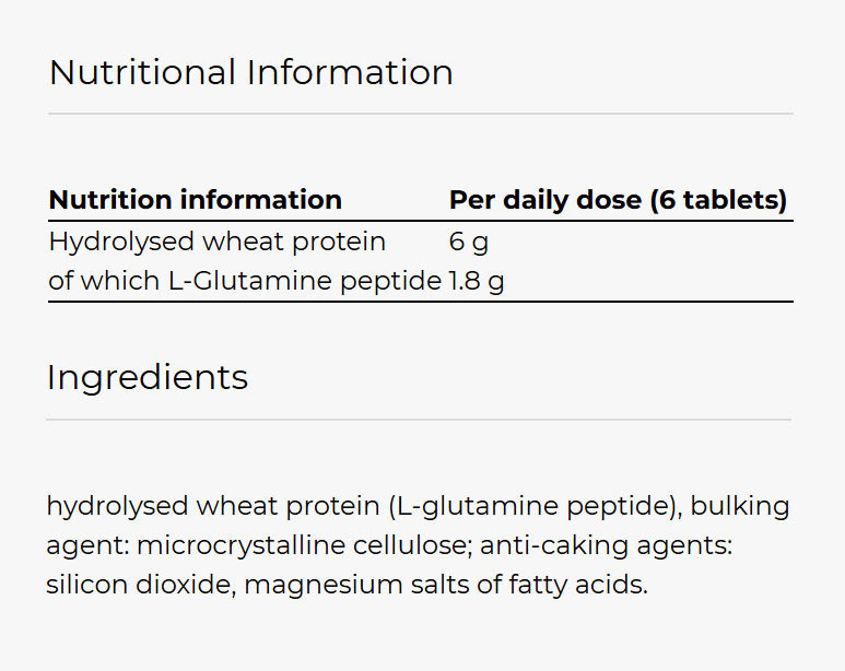 • 1,000mg glutamine peptide per tablet