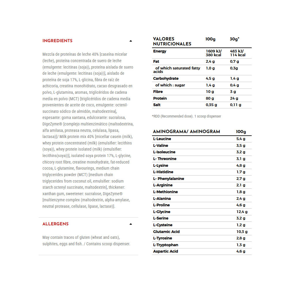 • 3-phase sequential release → combines fast, medium, and slow-absorbing proteins for a constant amino acid supply.