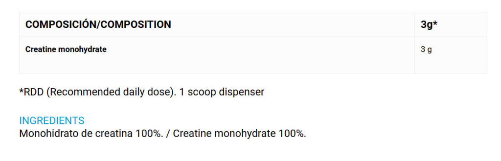 Supplementation with creatine monohydrate improves energy performance and recovery from fatigue and physical exertion, as it is a precursor of adenosine triphosphate (ATP), the main source of mitochondrial energy responsible for strength and energy during the first 10-12" of anaerobic exercise.