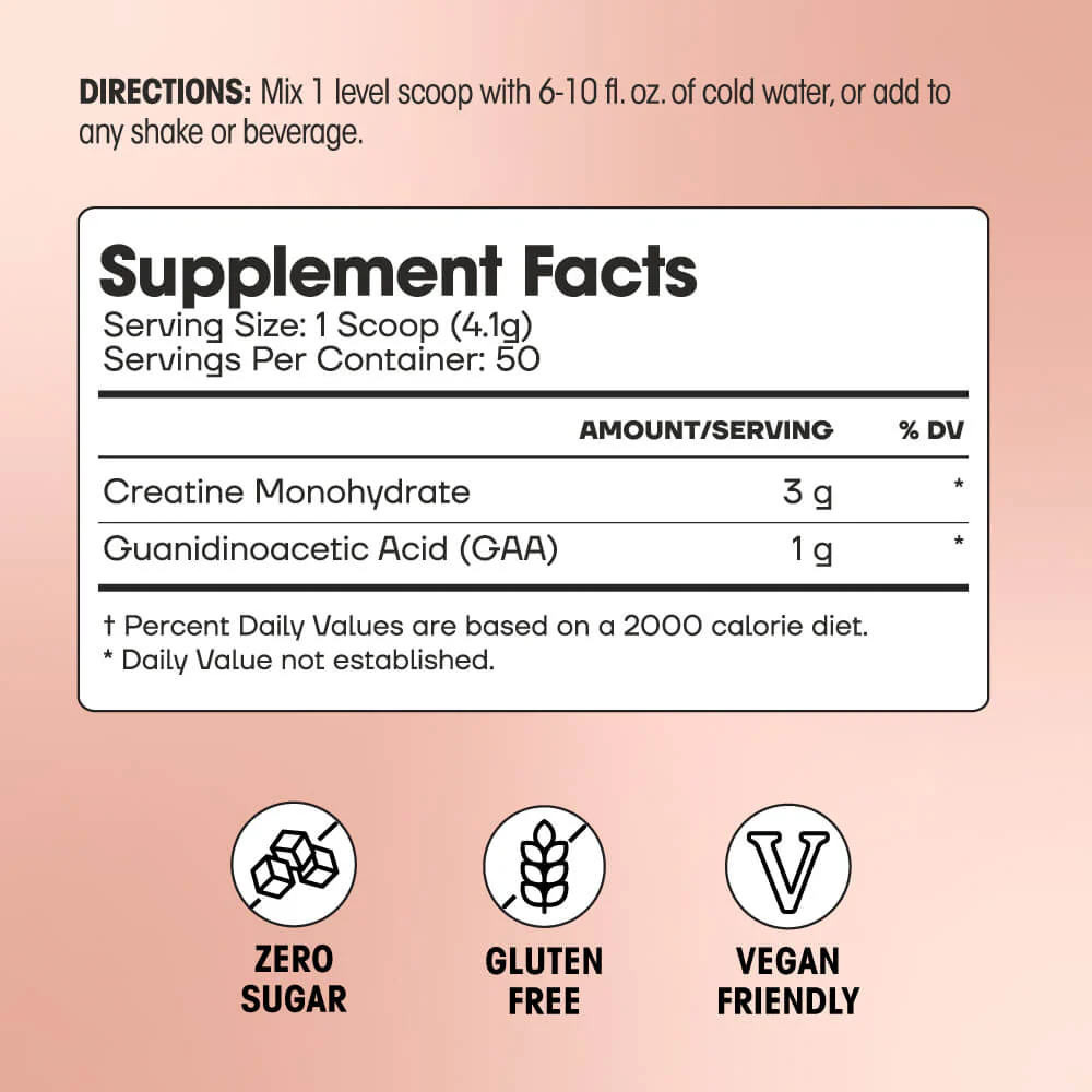 • CLINICALLY TESTED complex of creatine monohydrate and GAA provides more benefits.