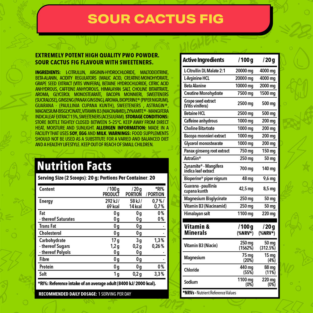 Do you want to really deliver in your workout and are looking for that extra boost of power, focus, and pump? Nano Supps CFR Pre-Workout delivers just that: With 200 mg of caffeine and a professional blend of 4,000 mg L-citrulline, 2,000 mg beta-alanine, creatine, AstraGin®, Zynamite®, and BioPerine®, you'll push yourself even harder on your next set and stay mentally sharp, from the first scoop to the last rep.