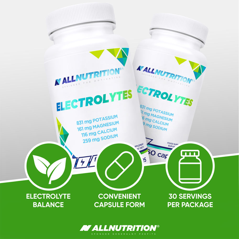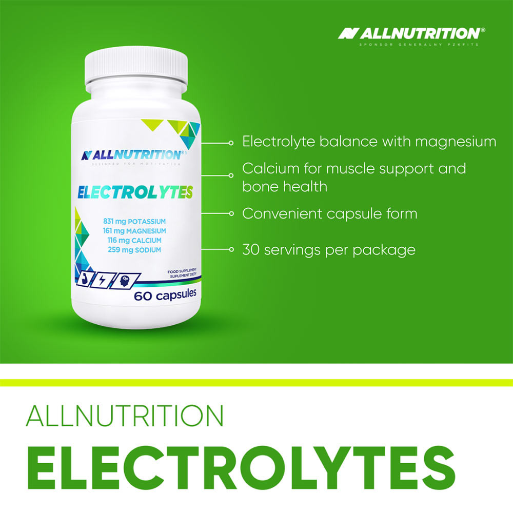 ALLNUTRITION ELECTROLYTES is a convenient capsule-based supplement designed for quick and effective hydration and electrolyte replenishment. Perfect before, during, or after exercise – whenever the body needs immediate support to restore fluids and electrolytes.