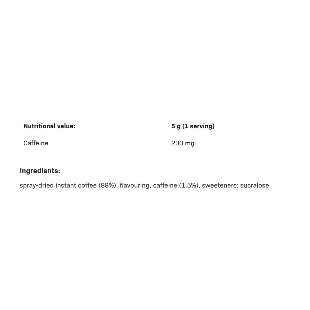 FITKING ENERGY STRONG COFFEE contains 200 mg of caffeine per 5 g serving – that’s four times more than ordinary coffee! It gives you a strong start to the day or works as the perfect boost before physical and mental challenges.