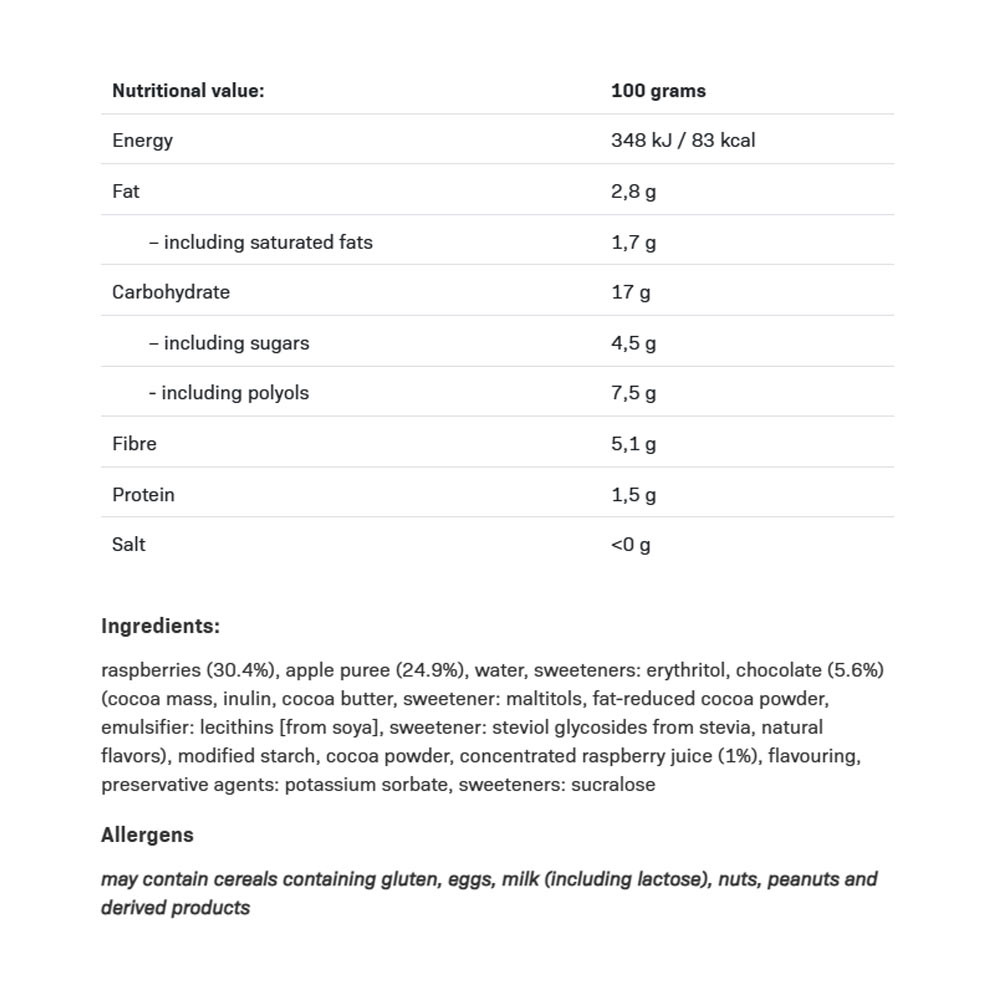 Fresh raspberry pieces dipped in light, chocolatey jelly – this is how ALLNUTRITION FRULOVE CHOCO IN JELLY RASPBERRY was created – a sweet and fruity delight without added sugar, like nothing you’ve ever tried before!