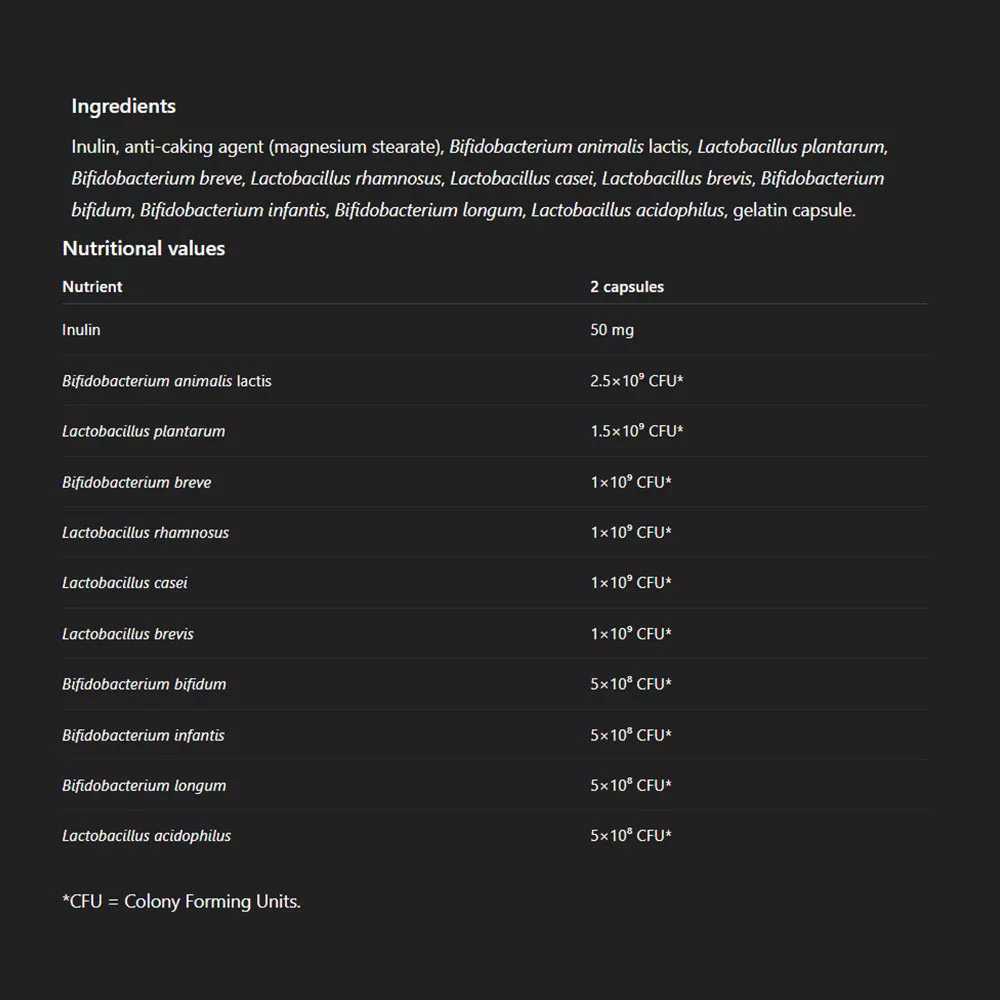 ProbioTen is a functional supplement containing an effective combination of ten probiotic bacterial strains and inulin